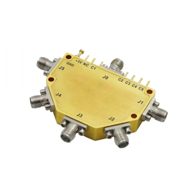The OSP5TA-1-20GA2 is a broadband absorptive single-pole 5-throw switch with an operating frequency range of 1-20 GHz. It features a maximum insertion loss of 3.7 dB, a minimum isolation of 75 dB, a maximum TTL control switching speed of 100 nsec, a maximum VSWR of 2.0:1. SMA-F connectors, it is made of nickel-plated aluminum, resulting in a lightweight design weighing only 30 grams, it is ideal for automated test systems, electronic warfare, radar, and general RF switching applications.